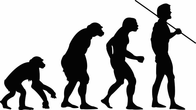 Pedig még, amikor „Darwin szellemében” megpróbálják ábrázolni az evolúciót, akkor is mintha az ember felé vezetne a fejlődés: pólókon is látni időnként a fenti rajzot, hogy felegyenesedik az ember, és a harmadik-negyedik rajznál lesz egy dárda a kezében. Mintha azt mutatná az ábra, hogy ebben az irányban haladunk.