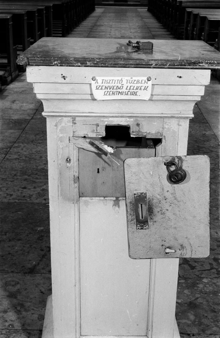 Annál lejjebb szinte semmi sincs, mint amikor templomi perselyt fosztogatnak. Ha van bűncselekmény, amit ember nem jószántából követ el, ez az. És még az is erősen valószínű, hogy a gyülekezet egyik tagja csapott le, és elszántságában sem a kis lakat, sem a persely felirata nem tudta megingatni.