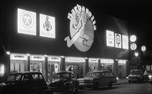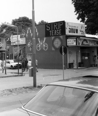 a kirakatban kuncsaftra váró – sokszor vendégmunkás – lányokkal, az olcsó peep show-k csalogató reklámjaival, a nagyközönség számára nálunk szintén elérhetetlen topless műsorokkal és szexboltokkal.