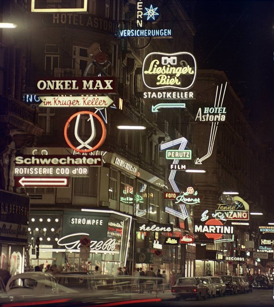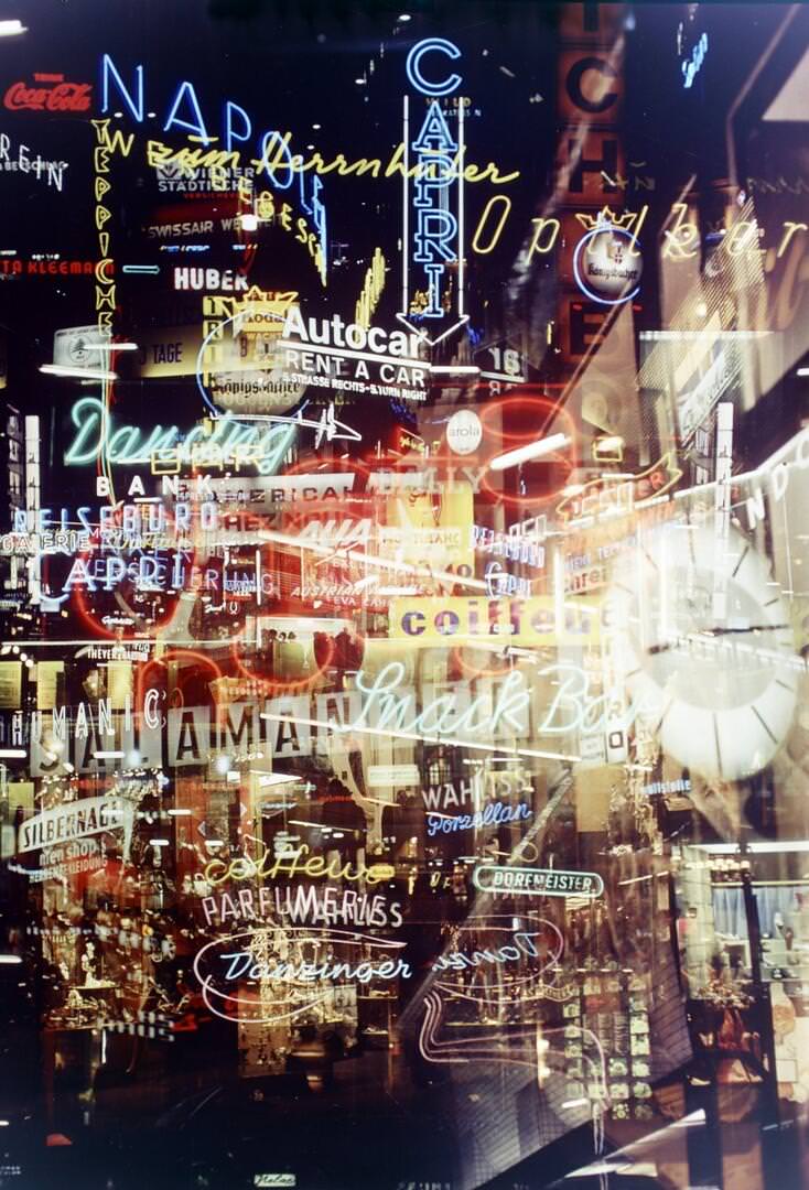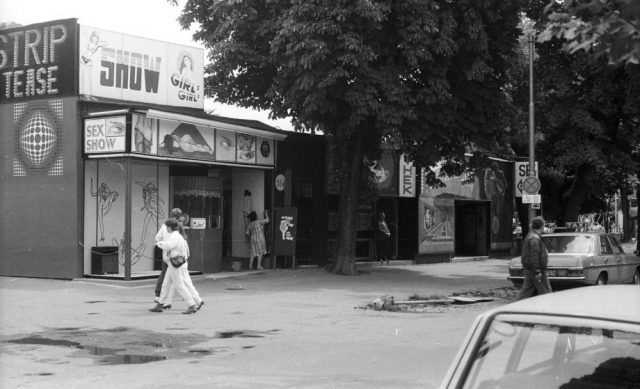 Ennél azonban többeket hozott lázba a szexipar újdonsága. Pár schillinges nonstop pornómozi, revübárokat félmeztelen képekkel hirdető szendvicsemberek, sztriptízbárok a belvárosban és a Práterben – itt éppen egy Vasarely dekorációval feldobva a szexshow bejáratát.