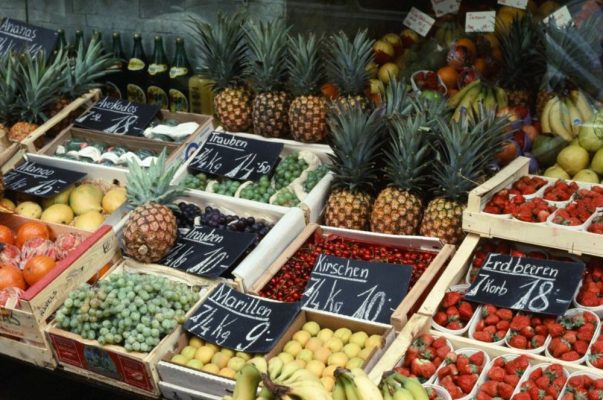 Bőség az újságos és zöldséges standokon, reklámok és autószalonok, Impulse kozmetikumok és német termékkatalógusok.