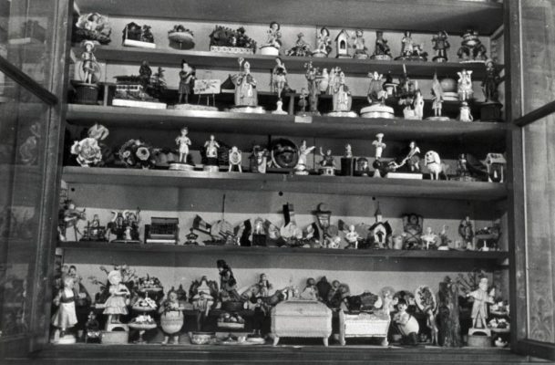 Cukorkakínálók és asztaldíszek gyűjteménye a Ruszwurm cukrászdában 1939-ben. #149537 Fotó: Fortepan / Szöllősy Kálmán