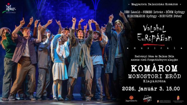 Szombaton Komáromban a Monostori Erőd ad otthont a Valahol Európában című musical előadásnak. Ez a megható történet a gyermeki reményről és összetartásról szól, klasszikus dalokkal és erős színpadi jelenléttel. Történelmi helyszín és kultikus darab – igazi téli kulturális klasszikus.