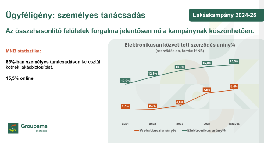 A Groupama Biztosítónak 570 ezer lakásbiztosítása van, 150 saját fiókban és 300 OTP fiókban értékesítik ezeket, amellett, hogy online is meg lehet kötni. A fiókszám azért nem mindegy, mert úgy érzékelik, hogy például lakásbiztosítások esetében fontos a személyes jelenlét is, sokszor fordulnak tanácsadókhoz az ügyfelek. – mondta Szobonya László, a Groupama lakossági nem-életbiztosítás termékmenedzsment vezetője.