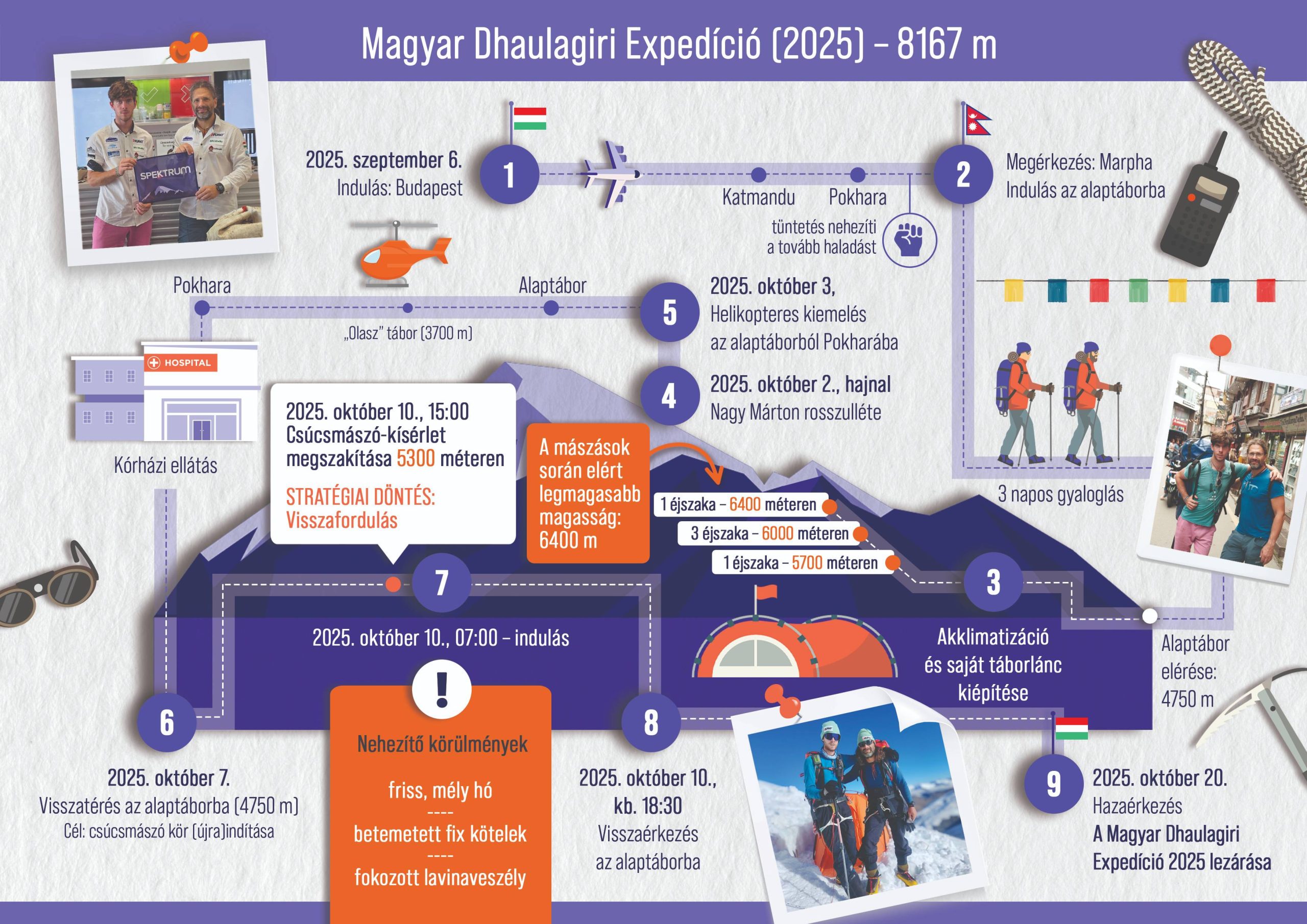 Mi történik valójában több ezer méterrel a tengerszint felett? Hogyan zajlik egy „átlagos” reggel ott, ahol a levegő ritka, a test kiszolgáltatott, és minden döntésnek súlya van? Február 8-án 17:00-kor érkezik a Spektrumra a 8000 méter – Amikor a hegy dönt, amely minden eddiginél hitelesebb képet ad a magashegyi expedíciók világáról. A dokumentumfilm-sorozat főszereplői, Klein Dávid és Nagy Márton oxigénpalack és magashegyi teherhordók nélkül indulnak a világ hetedik legmagasabb hegyére, a 8167 méteres Dhaulagirire.