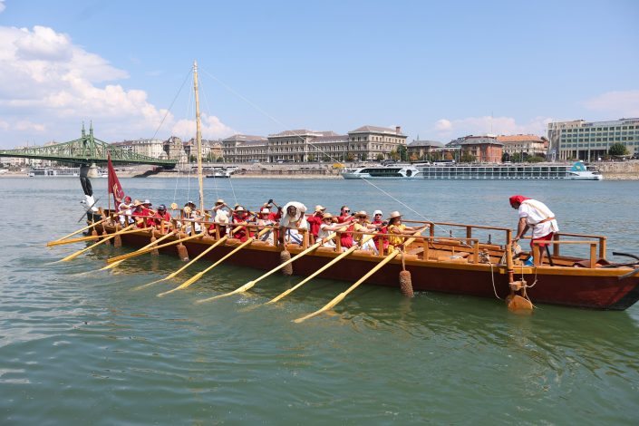 Római kori hajó a Budapesti Műszaki és Gazdaságtudományi Egyetem (BME) előtti Duna-szakaszon 2022. augusztus 15-én. A hajó július 16-án rajtolt Németországból, 24 fős legénységével végighalad a Dunán a Fekete-erdőtől Románia keleti határáig, összekötve a Duna menti római örökséggel is rendelkező településeket.