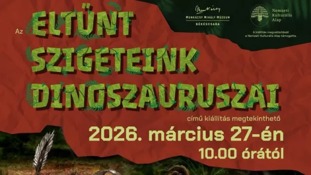 Időutazásra hív a Munkácsy Mihály Múzeum új tárlata, az Eltűnt szigeteink dinoszauruszai. A kiállítás a Kárpát-medence 70–85 millió évvel ezelőtti világát idézi meg, amikor szigetek emelkedtek ki az ősi tengerből. Két legendás lelőhely, a Hátszegi-medence és az iharkúti feltárás eredményei most először láthatók együtt. Fosszília-leletek, rekonstrukciók és interaktív elemek teszik kézzelfoghatóvá a magyar dinoszaurusz-kutatás múltját és jelenét. Október végéig látogatható – családbarát hétvégi program, amelyben a tudomány és a kaland találkozik.